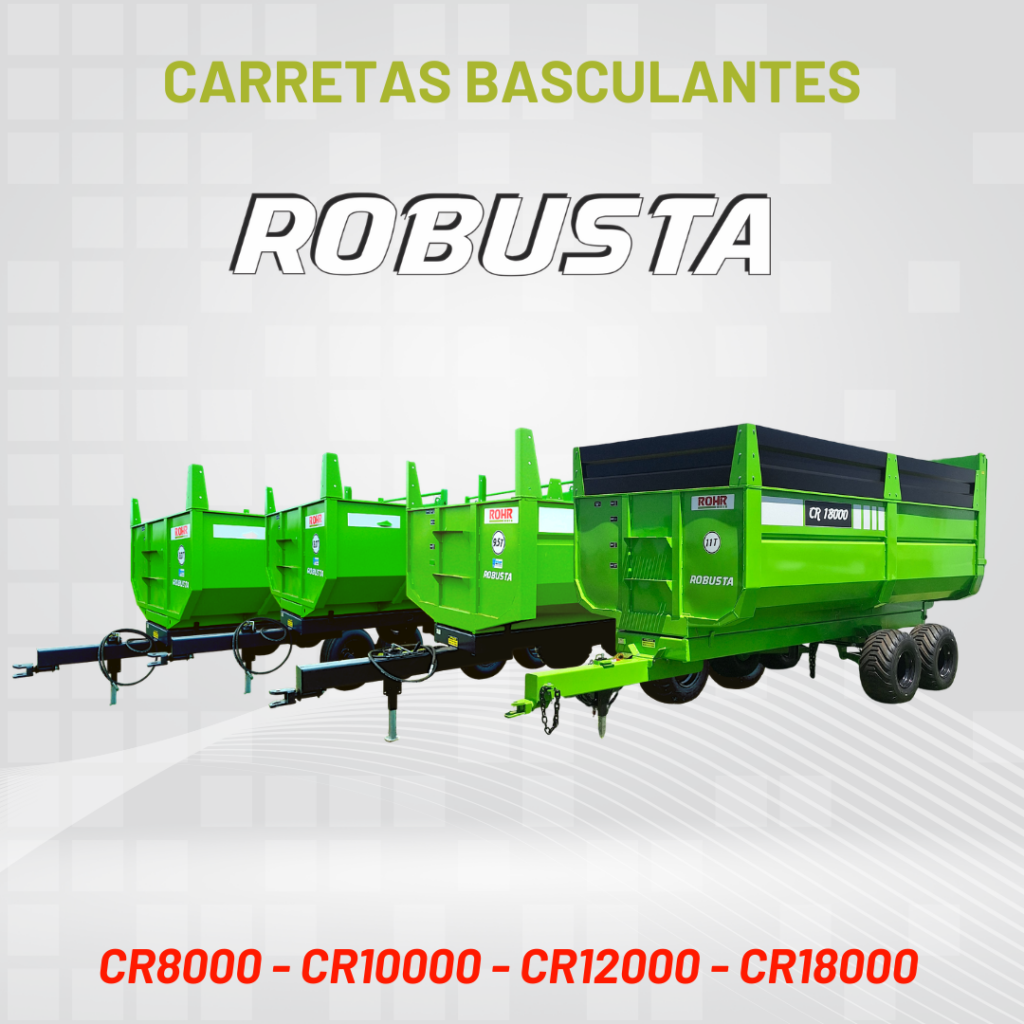 As Carretas Basculantes da Linha Robusta ROHR são ideais para quem busca um produto resistente, durável e versátil. Fabricadas com chapas de espessura superior, o que garante maior durabilidade ao seu implemento.